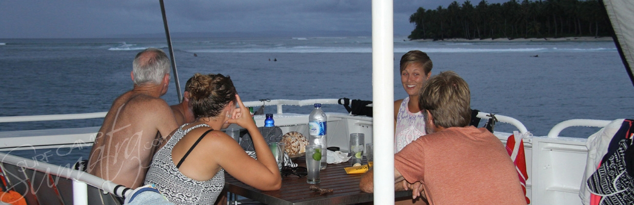 The crew aboard this high speed catamaran have over 15 years of combined experience in West Sumatra and with a top speed of 18 knots & cruising speed of 11 knots (most charters cruise at 7-8 knots), there’s no faster way to get you to the surf, meaning more surf time. Nothing offers comfort quite like a large catamaran. No need for gyro controlled stabilizers thanks to 2 hulls and an 8 meter beam. Whether flying along at 18 knots+ or just sitting at anchor, The MV Addiction will be the smoothest ride you ever get.