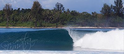 Roxies is a very fun wave that everyone seems to like. Its located 45 mins South of the Macaronis camp - and towards the very southern end of the Mentawai islands. It prefers some west in the swell and is pretty consistent from small to medium sized pulses that frequent the area. When it’s small it’s a top turn machine - but as the swell increases, this wave really comes alive offering beautiful barrels in dream like fashion. Many travelling surfers have compared this wave to a "Macas in reverse" due its synchronised shape & perfect rhythm.