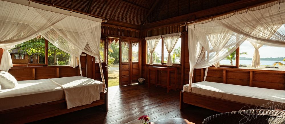 Accommodation: 2 x ocean front bungalows & main lodge