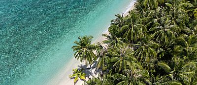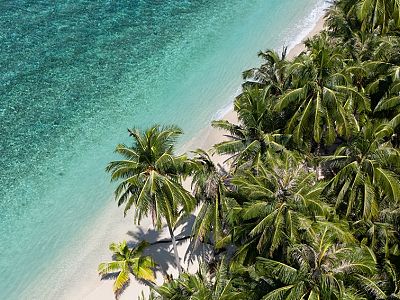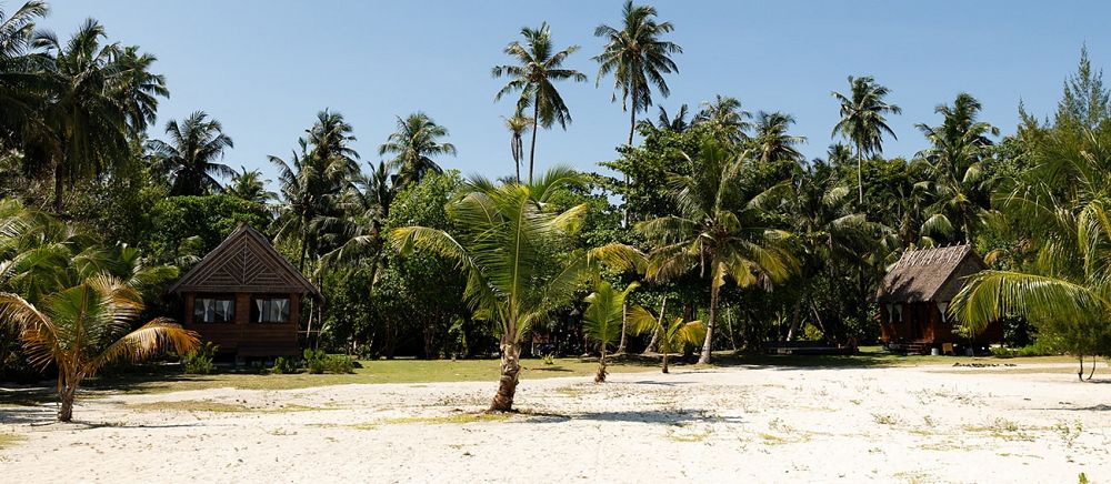 Views over Awera Island, with the camp pictured in the foreground. For reference, Awera Resort is a few hundred yards down the beach on the right side.