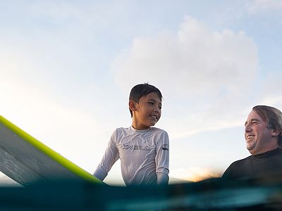 Awera’s surf guiding and instruction is led by Pete, a trained surf instructor and qualified surf lifesaver from the United States. Pete has lived full-time on the island with his young family for the past 14 years and brings deep local knowledge, water safety expertise and genuine passion to every session. A true surf froffer at heart, he’s as stoked to see beginners catch their first waves as he is to help experienced surfers score the waves of their lives.