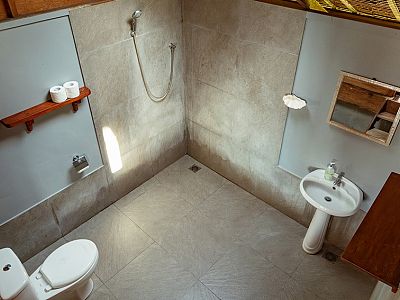 Private bathroom in each of the bungalows (shared bathroom in the main Lodge, for the single guests).