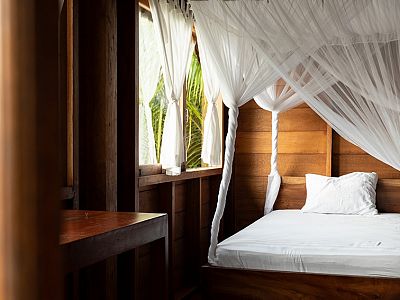 Rooms are designed for comfort in the tropics rather than excess, clean, airy and practical, with fans and mosquito nets providing cool, comfortable nights. With a maximum of just 8–10 surfers on site, the camp never feels crowded, allowing for privacy, space and a calm, easygoing atmosphere throughout your stay.